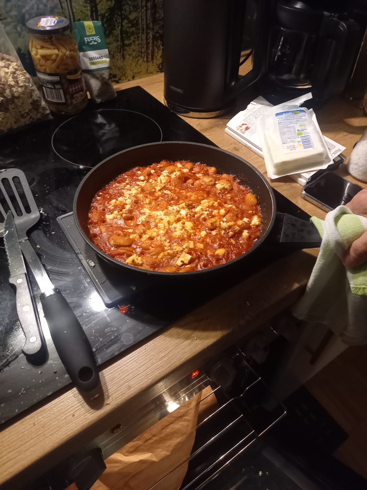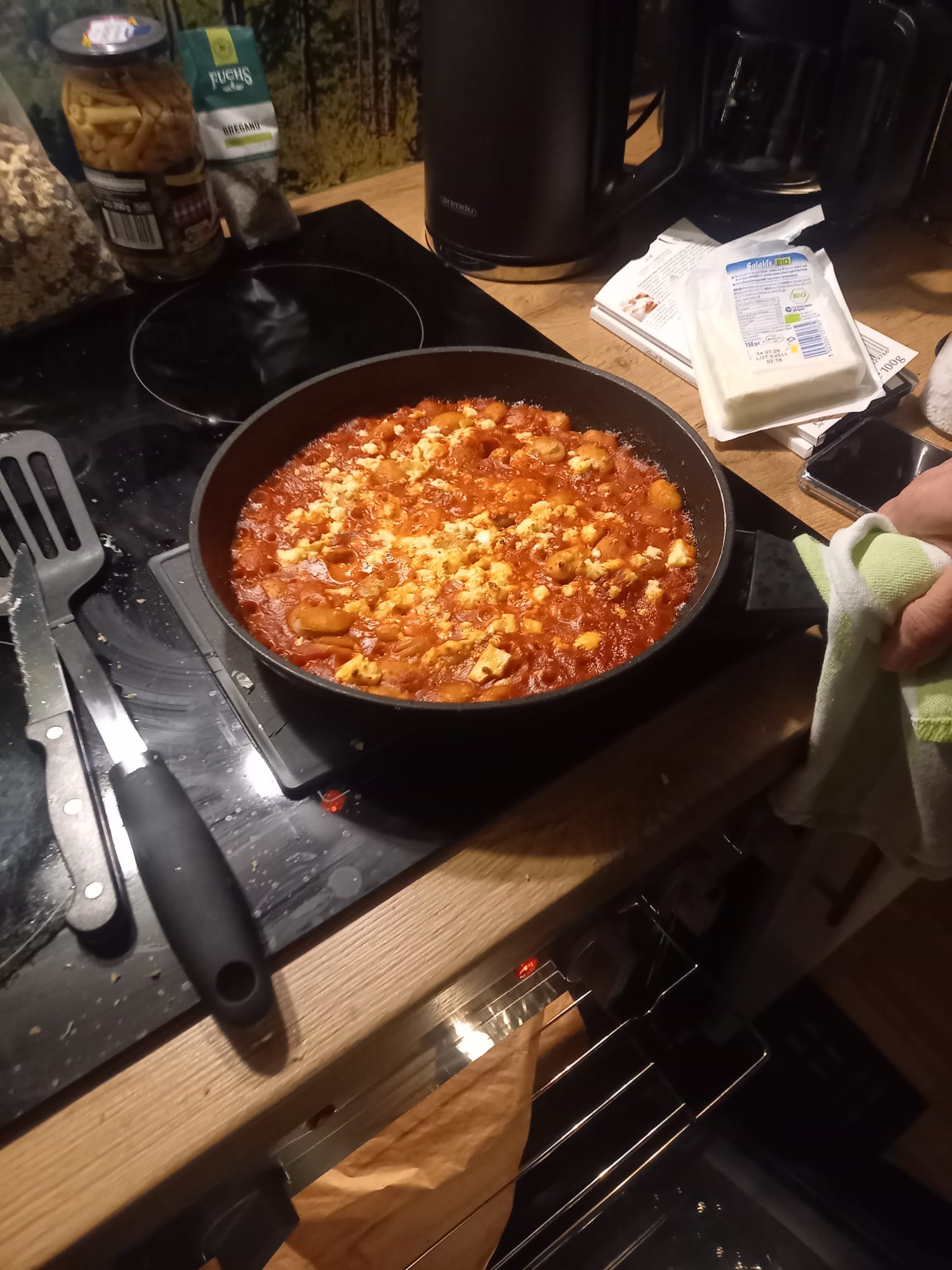 - Added Greens: Stir in a large handful of fresh spinach into the sauce along with the beans and let it wilt before baking.