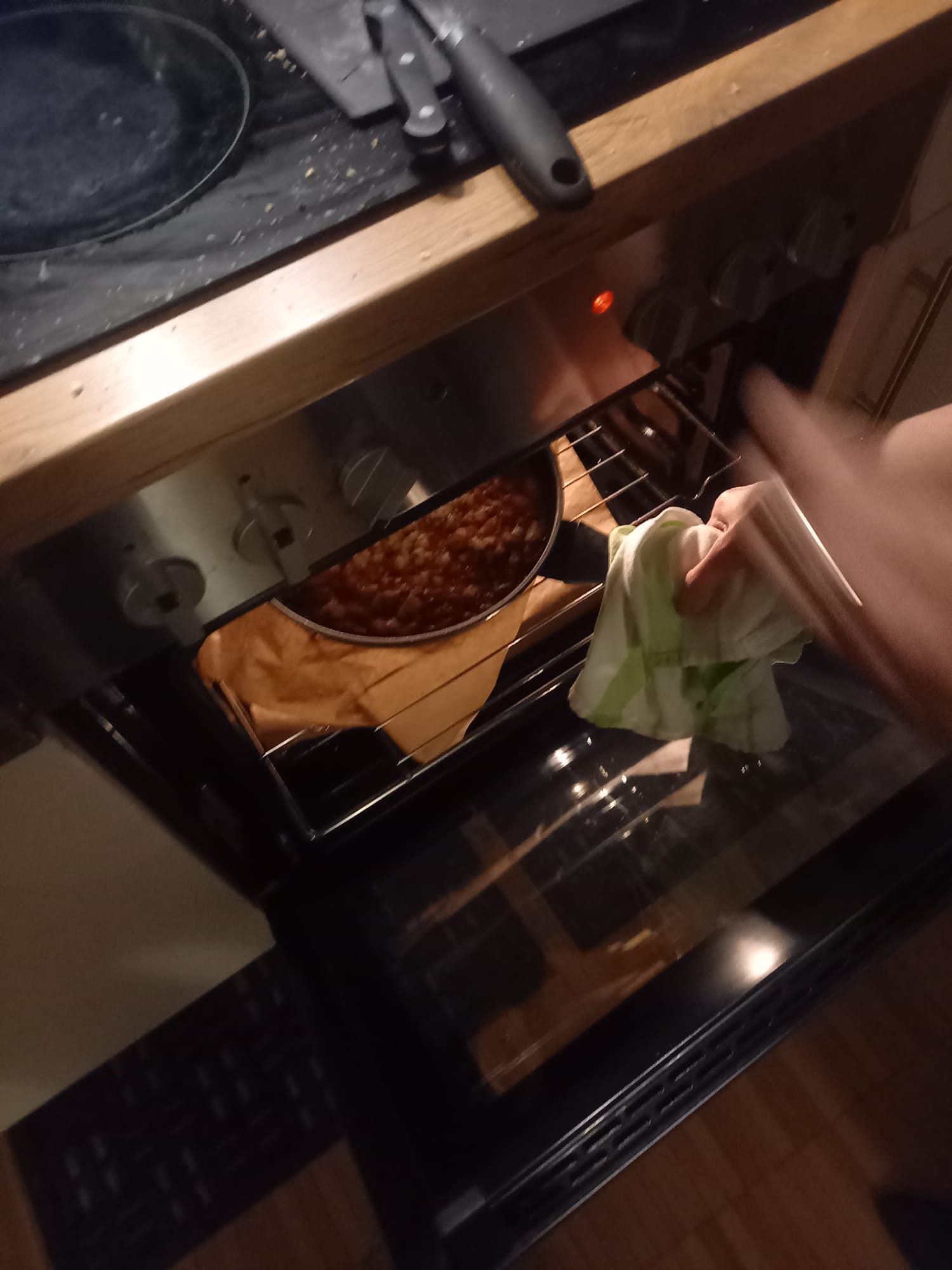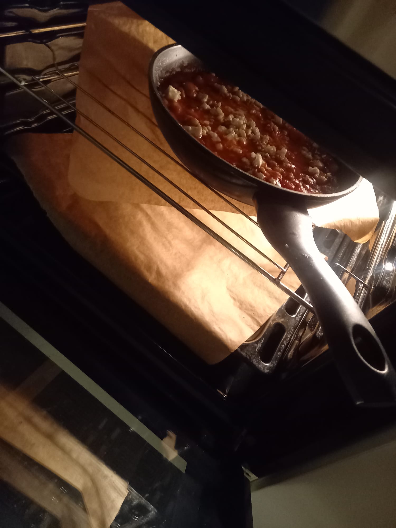 - Transfer the skillet to the preheated oven (or pour the mixture into a small baking dish).