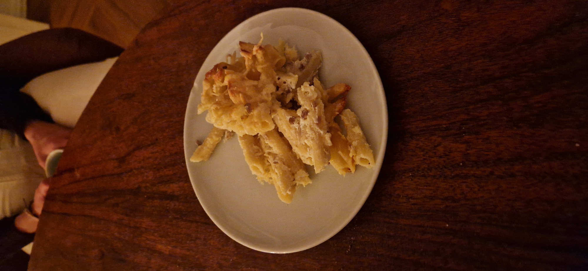 Simple vegetarian whole wheat pasta bake with eggs and low-fat cheese, enriched with tomatoes for flavor and fiber – creamy, oven-baked comfort with slow blood sugar rise. For 2 portions.