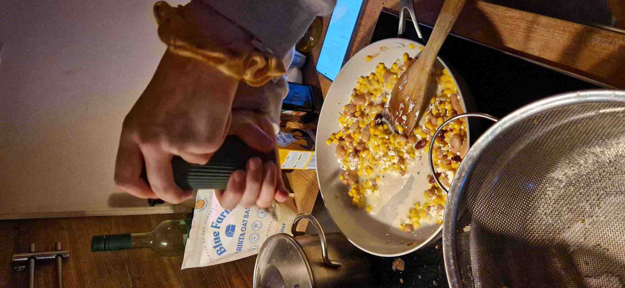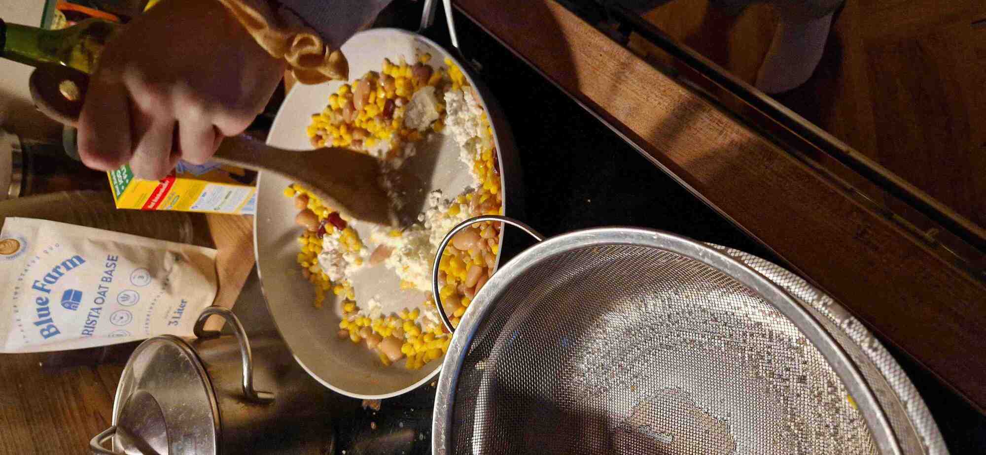 - Stir in corn and kidney beans and warm 2 to 3 minutes. Turn off heat.