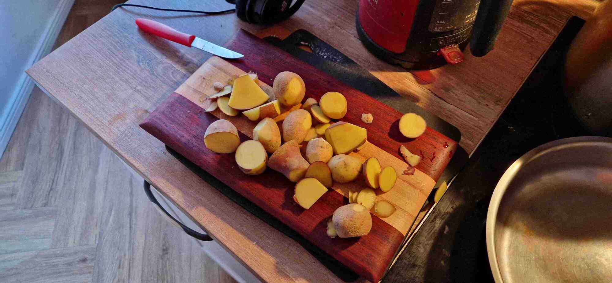 - 2 medium potatoes (about 300g), peeled and thinly sliced